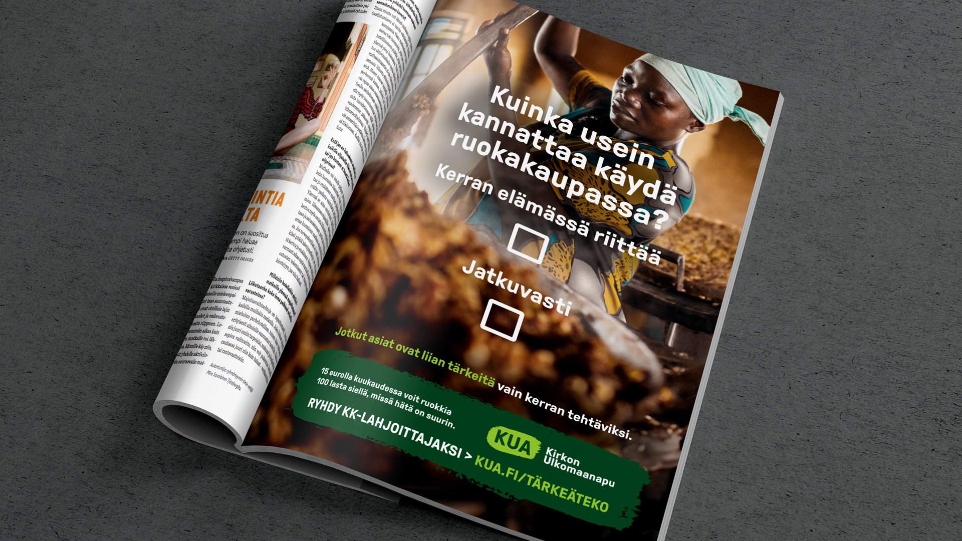 Suomen suurin kehitysyhteistyöjärjestö Kirkon Ulkomaanapu eli KUA aloittaa uudenlaisen vaiheen markkinoinnissaan.